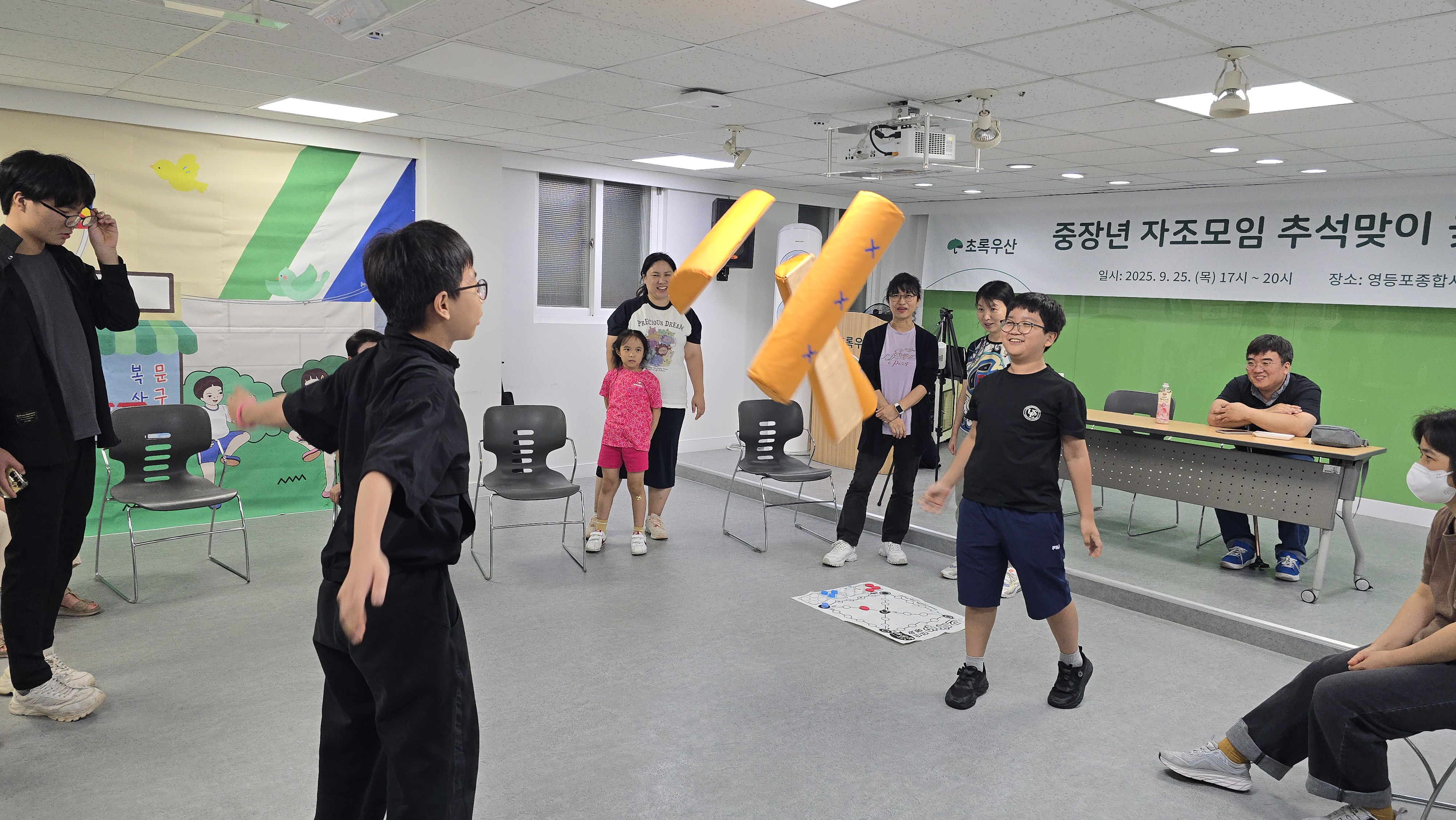 추석연휴를 일주일 앞둔 지난 9월 25일 저녁 복지관 지하 강당에서는 추석맞이 윷놀이대회가 열렸습니다. 중장년 자조모임 참여 주민들이 중심이 되어 부자팀, 모자팀, 부부팀, 부모자녀팀, 직장동료팀 등 다양한 구성의 6개팀 18명이 참가하여 즐거운 시간을 가졌습니다. 민속놀이를 통해 세대간 이웃간 소통의 가능성을 확인할 수 있는 시간이었습니다