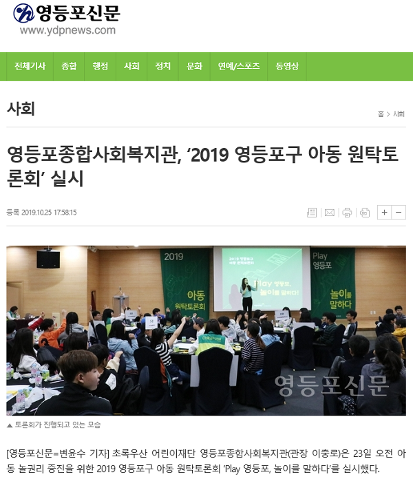 【영등포신문】2019 영등포구 아동 원탁토론회 ‘Play 영등포, 놀이를 말하다’