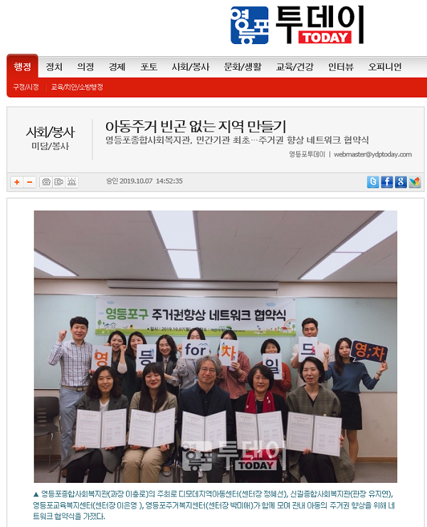 【영등포투데이】영등포구 주거권향상 네트워크 협약식