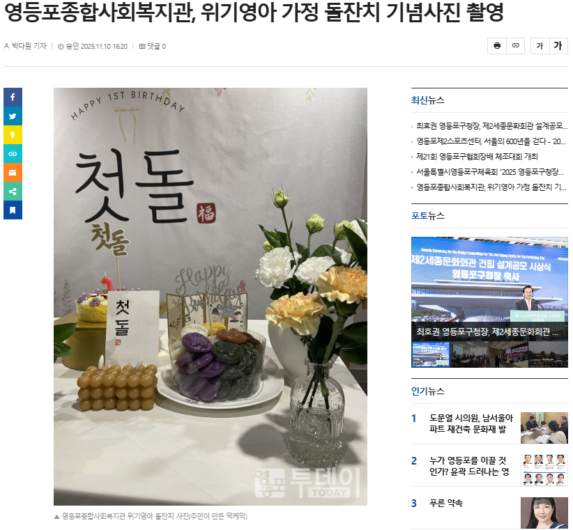 영등포종합사회복지관, 위기영아 가정 돌잔치 기념사진 촬영