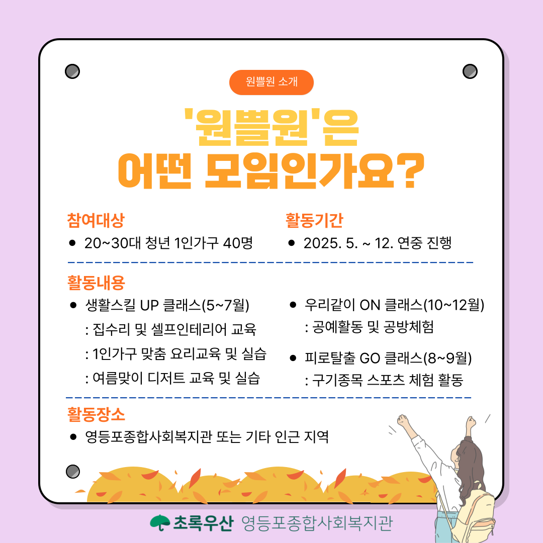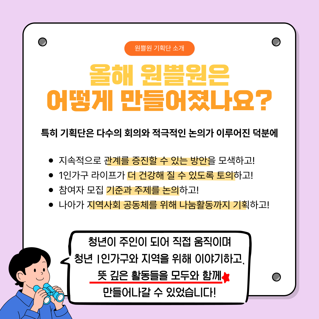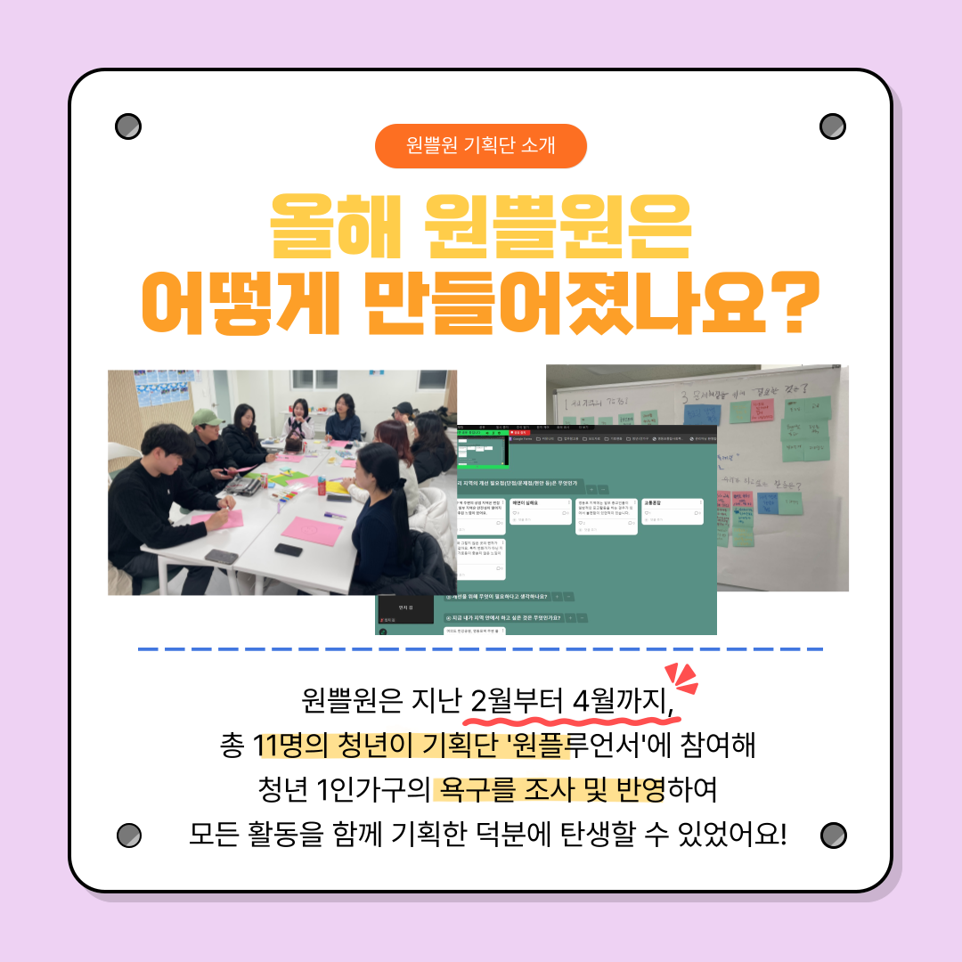 [청년 1인가구] 2025년 원쁠원의 3분기 활동을 소개합니다!