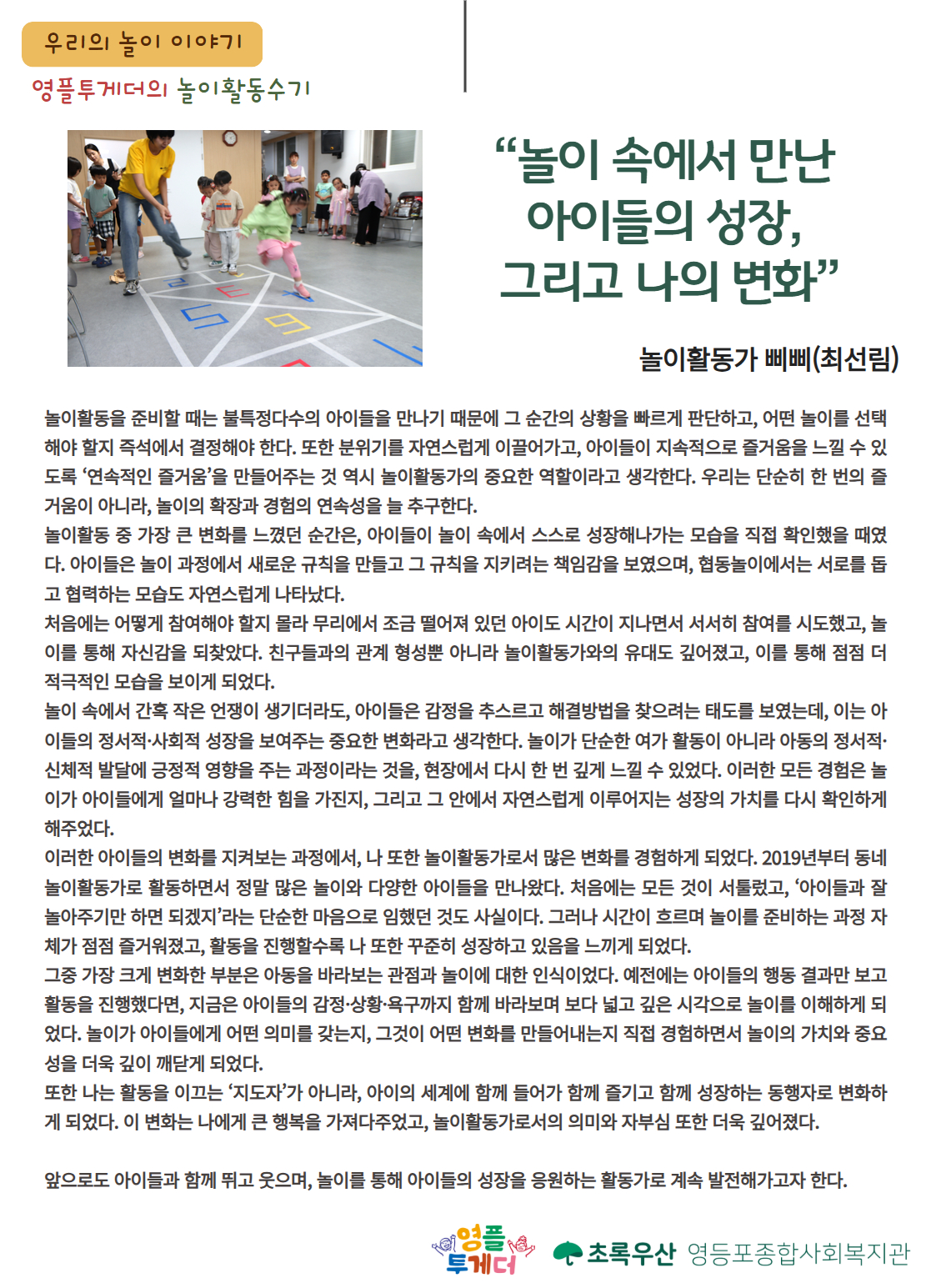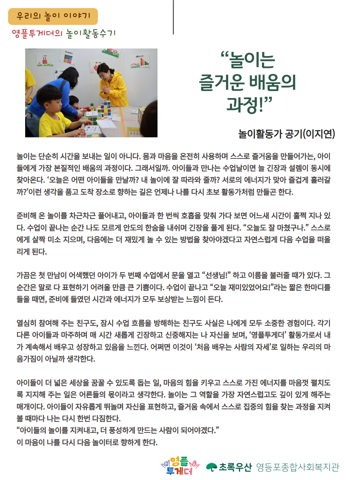 앞으로도 지역사회 안에서 아동의 놀 권리가 존중받을 수 있도록 지속적인 관심과 응원을 부탁드립니다. ♥