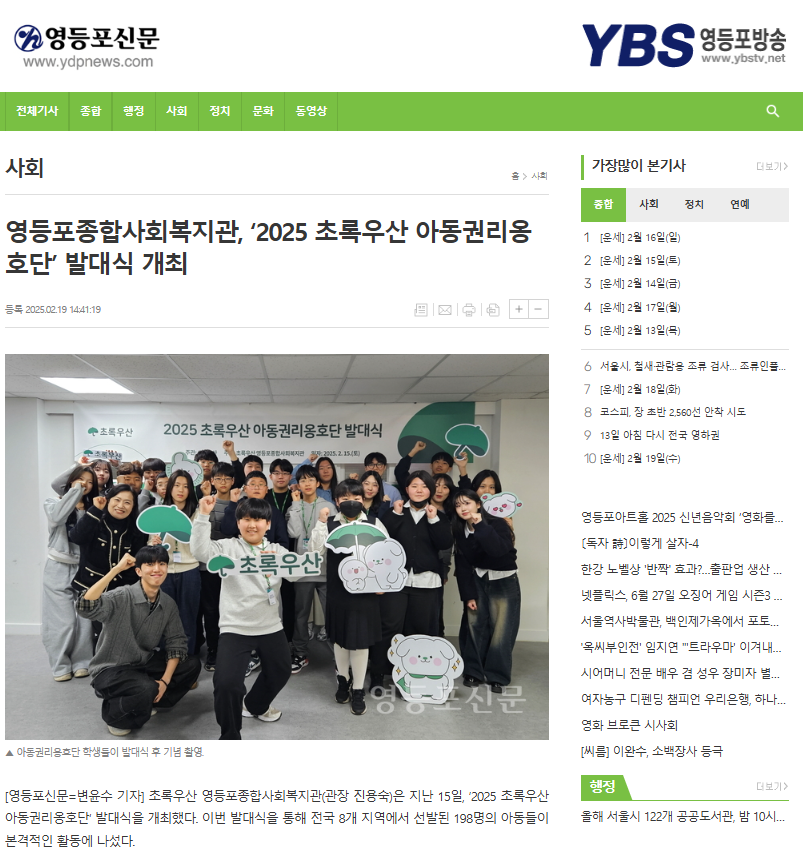 [영등포신문, 영등포투데이] 초록우산 아동권리옹호단, '아동 디지털 역량 교육 정책 제안 전달식' 실시